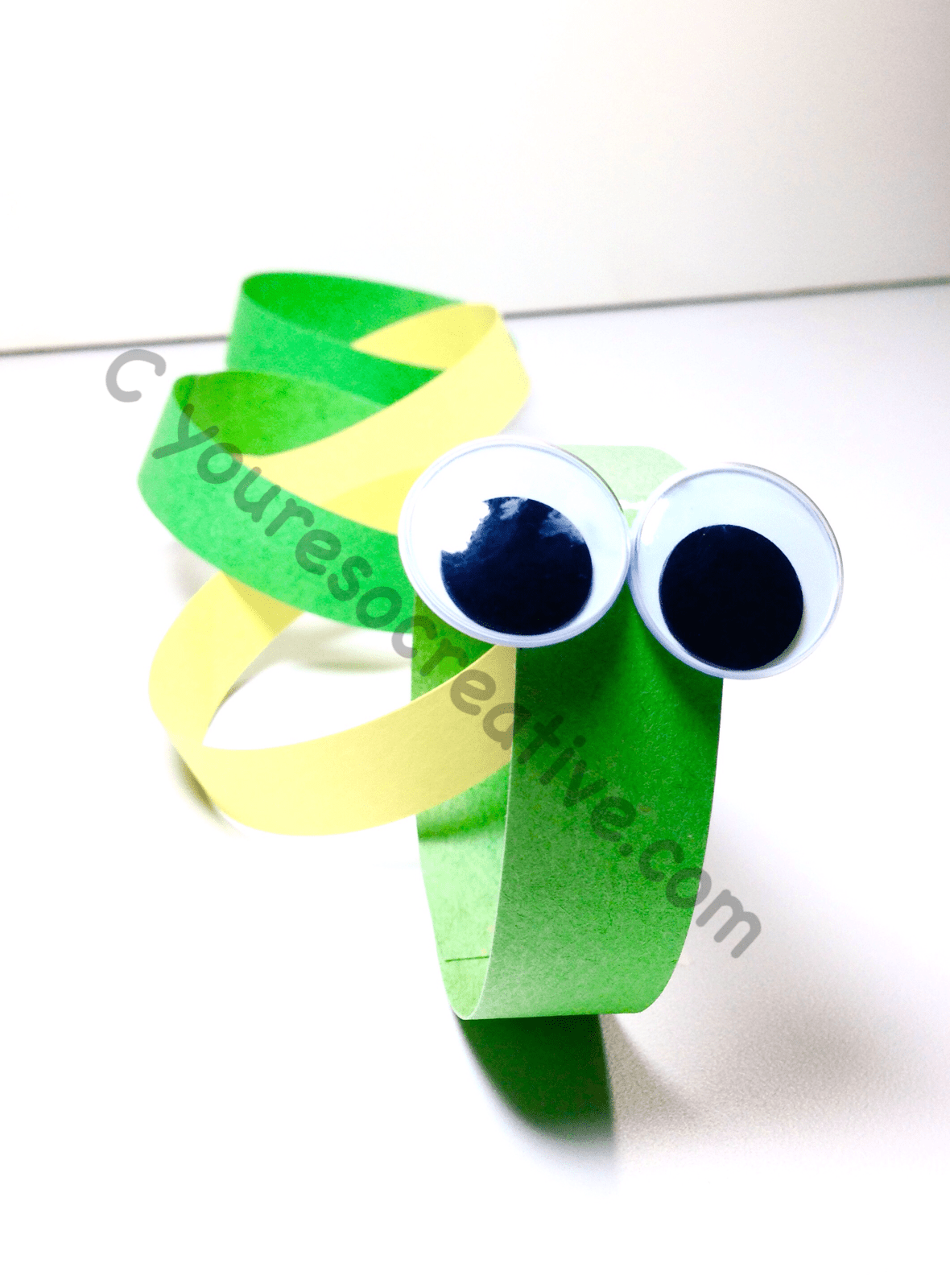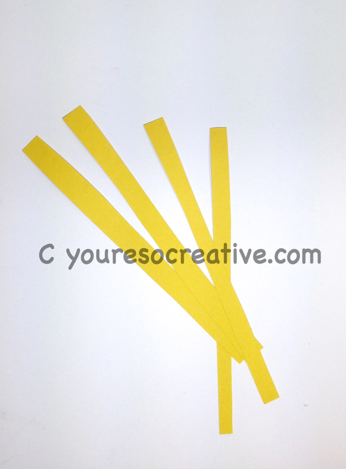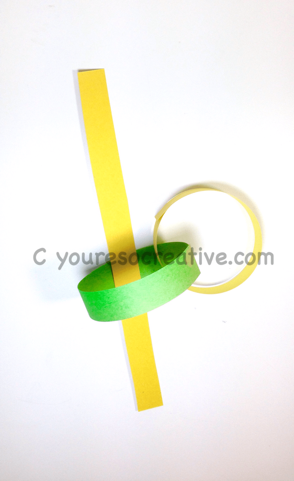 1. Cut two strips of yellow paper. (For a longer caterpillar, cut more.)