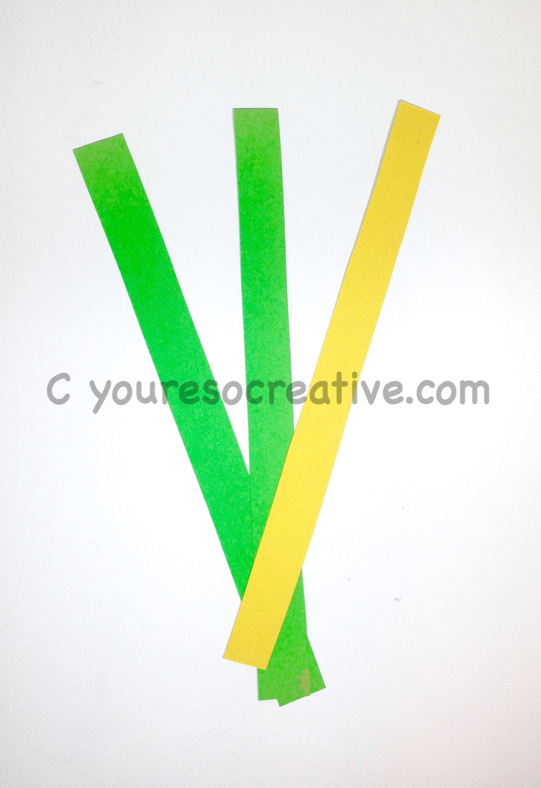 2. Cut three strips of green paper. (For a longer caterpillar, cut more.)