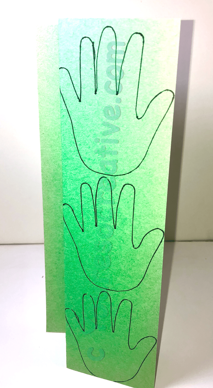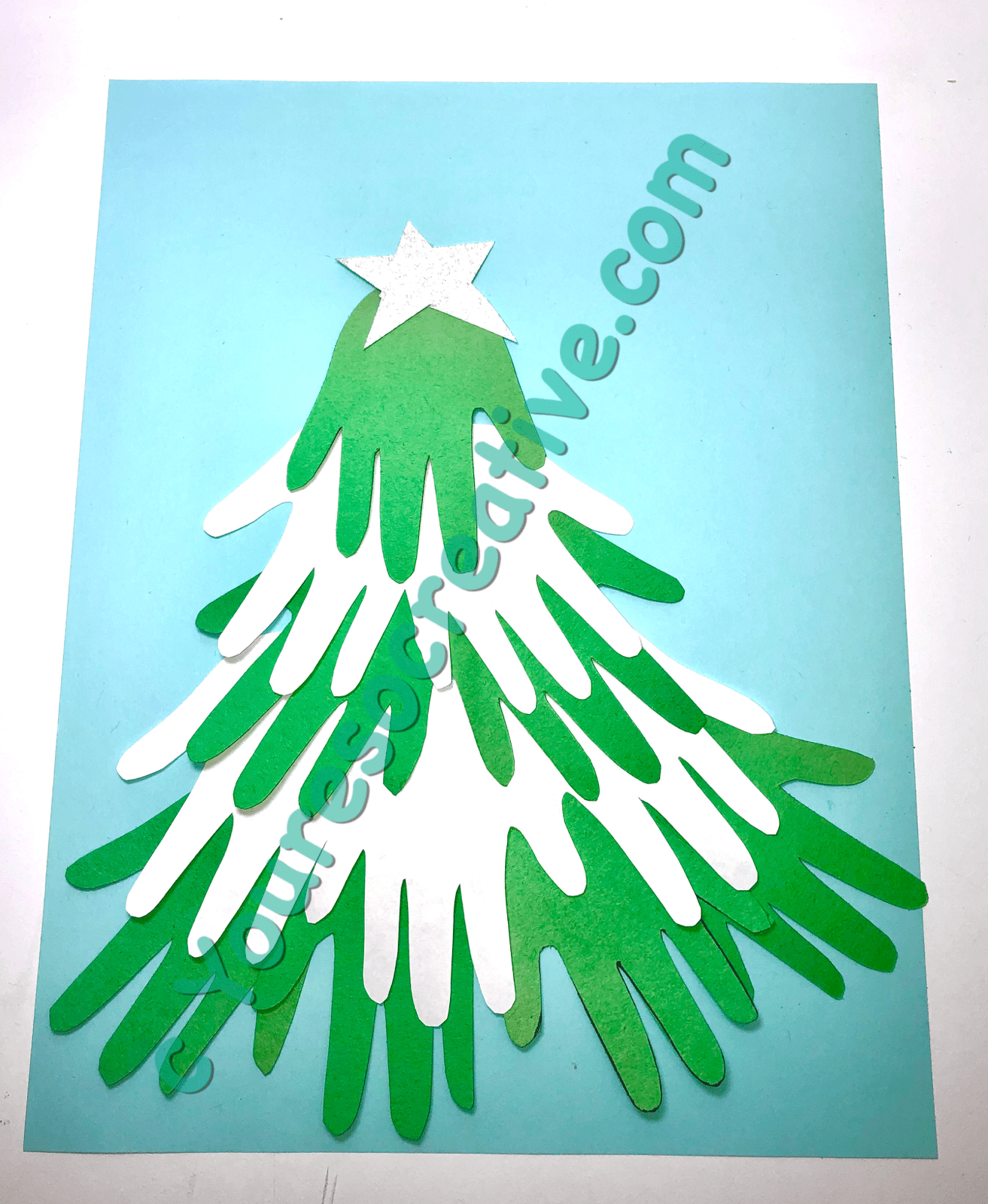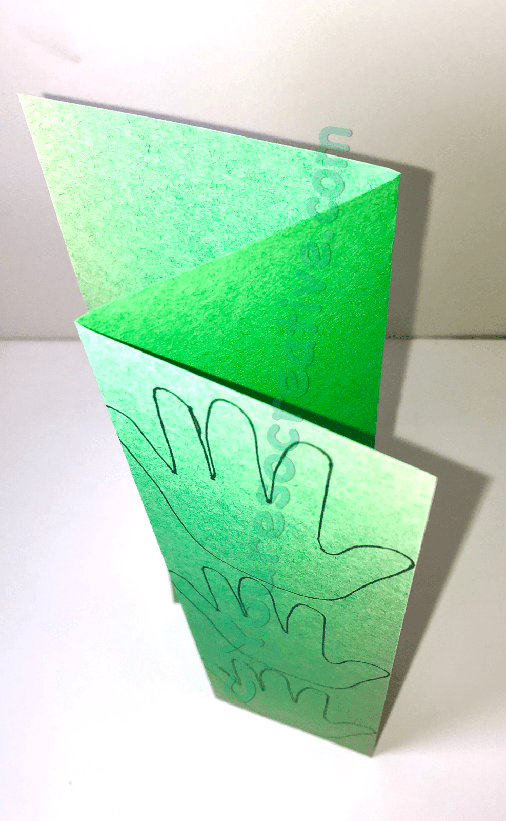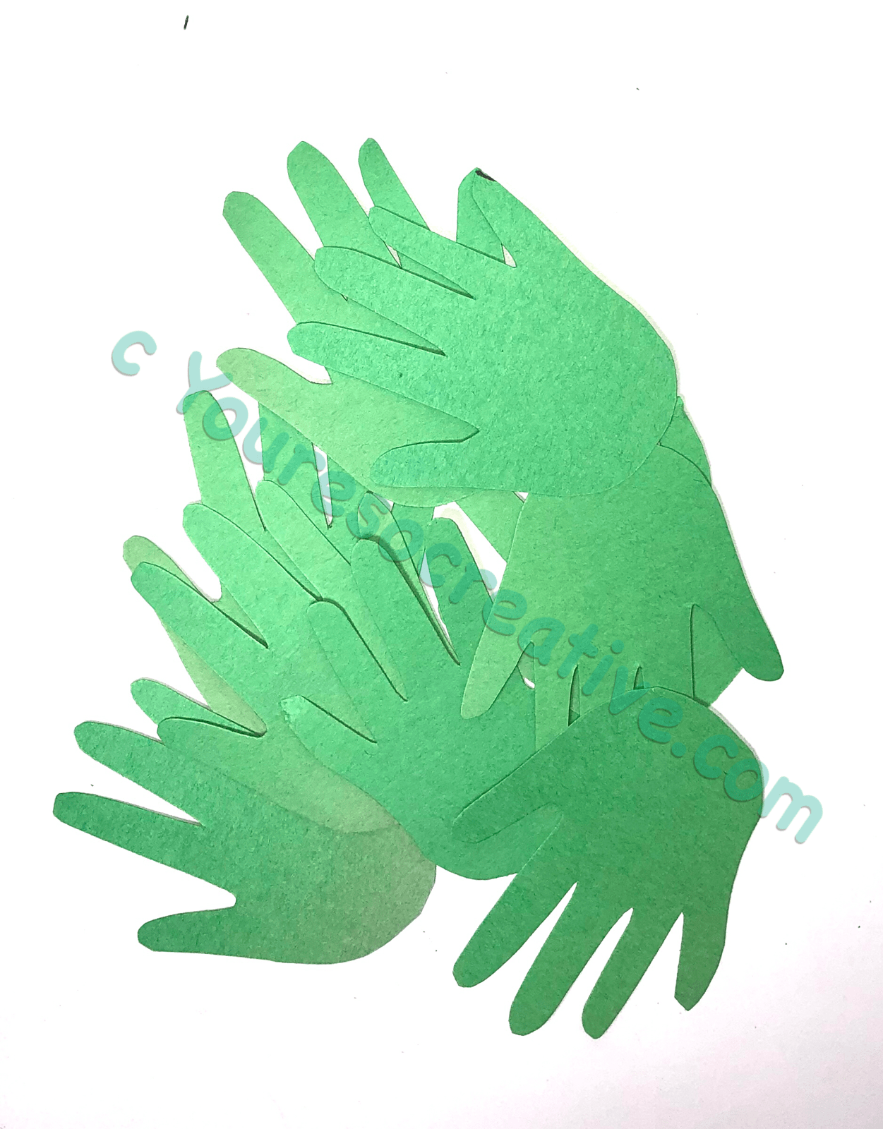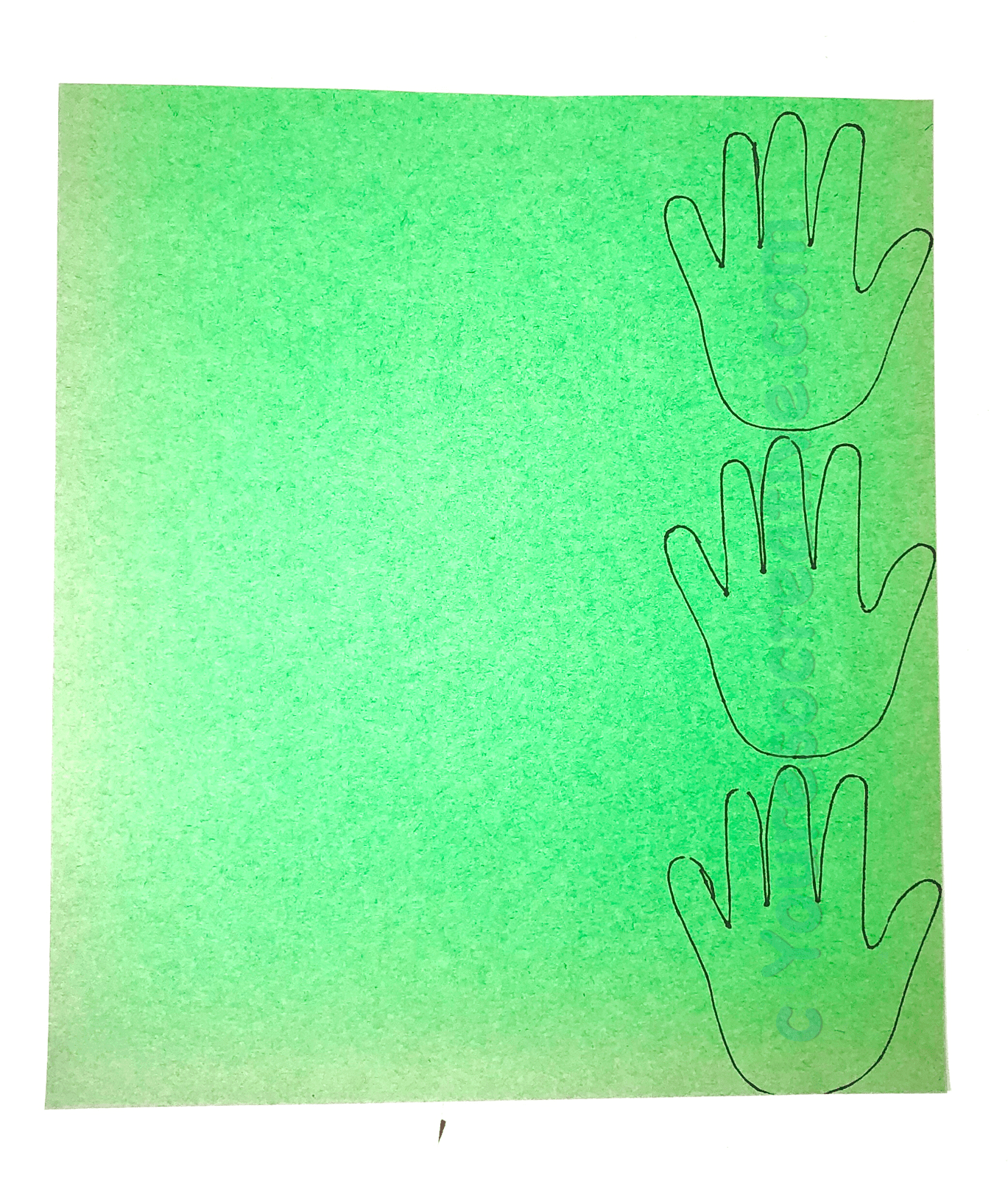 1. Trace child’s hand onto white and green papers. Fold to cut out more than one at a time.