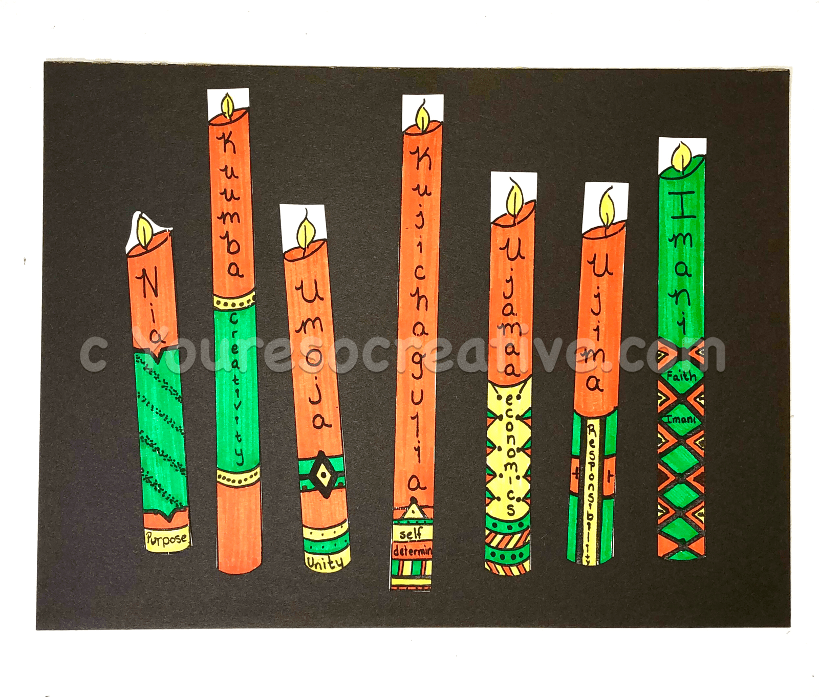 Kwanzaa Kwanzaa Supplies: Copy of candlesticks Markers Safety scissors Glue stick Construction paper Directions: Print off candlesticks. Color. Cut out. Glue candlesticks to construction paper. You’re so creative! Kwanzaa Art Project Free Children’s arts and craft projectsDownload Share this: Share on Pinterest (Opens in new window) Pinterest Share on Facebook (Opens in new window) Facebook Share on X (Opens in new window) X Share on WhatsApp (Opens in new window) WhatsApp