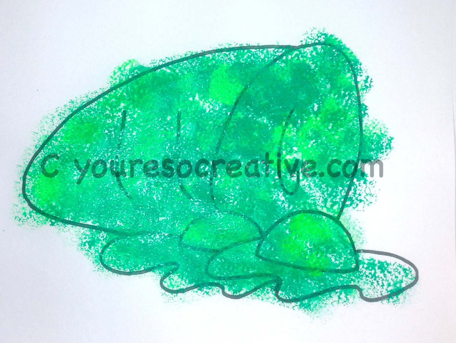 - Dip sponges into green paint and sponge paint eggs and ham.