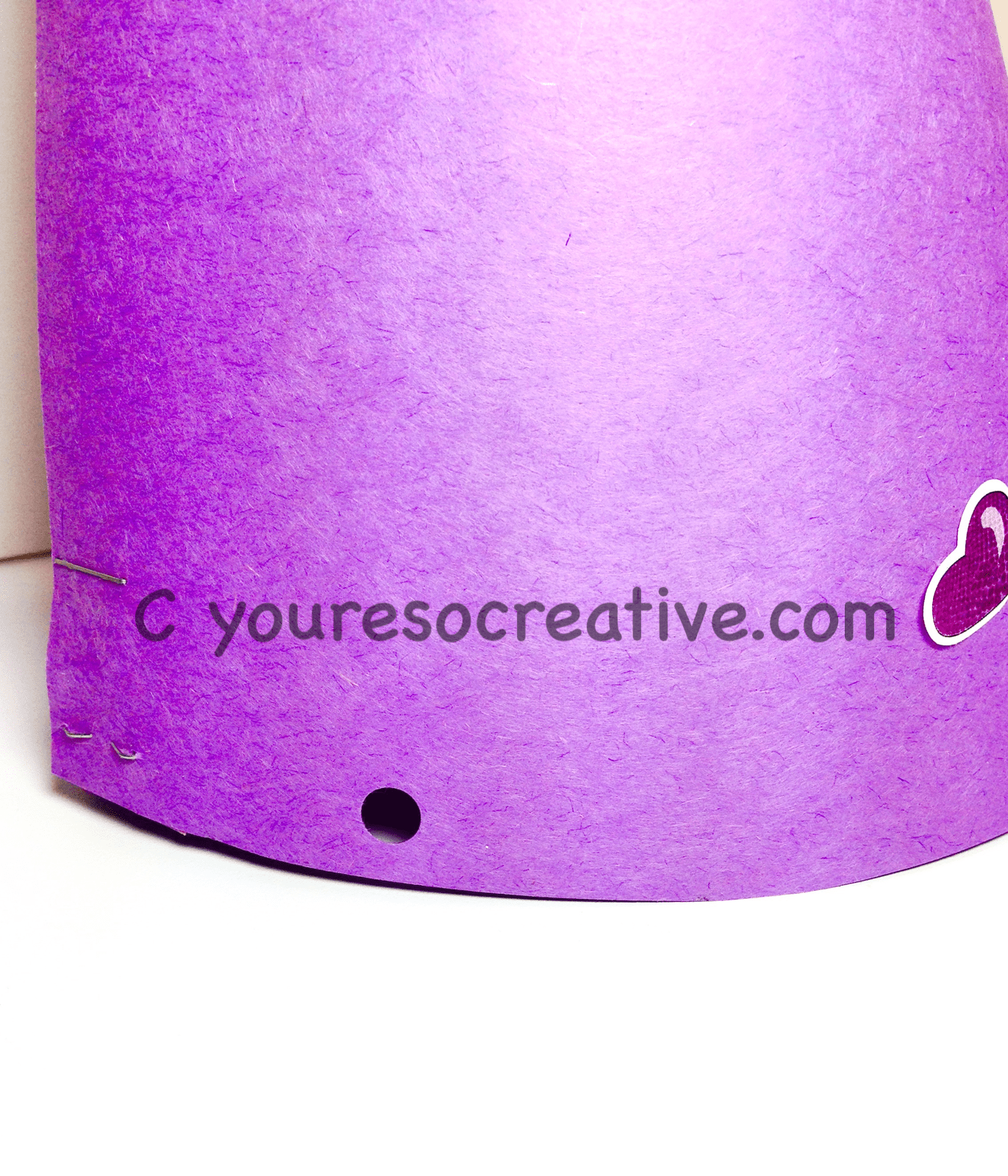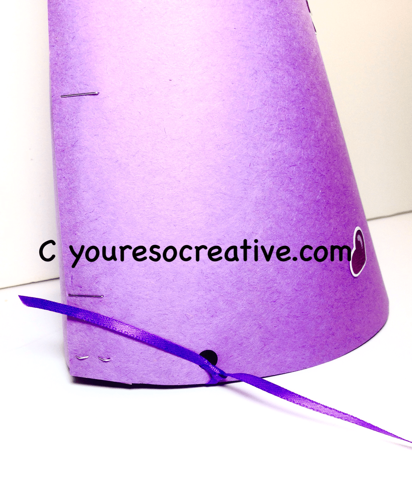 - Cut ribbon long enough to make a tie from sides of the hat to tie under children chin.