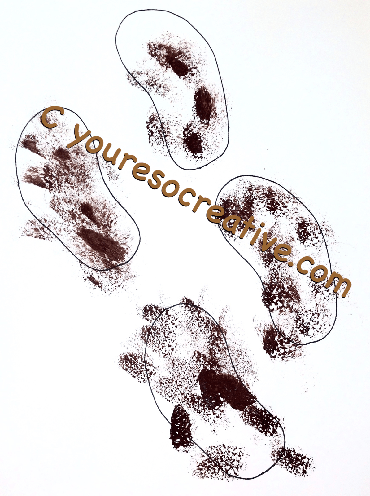 3. Sponge paint ‘mud” onto footprints.
