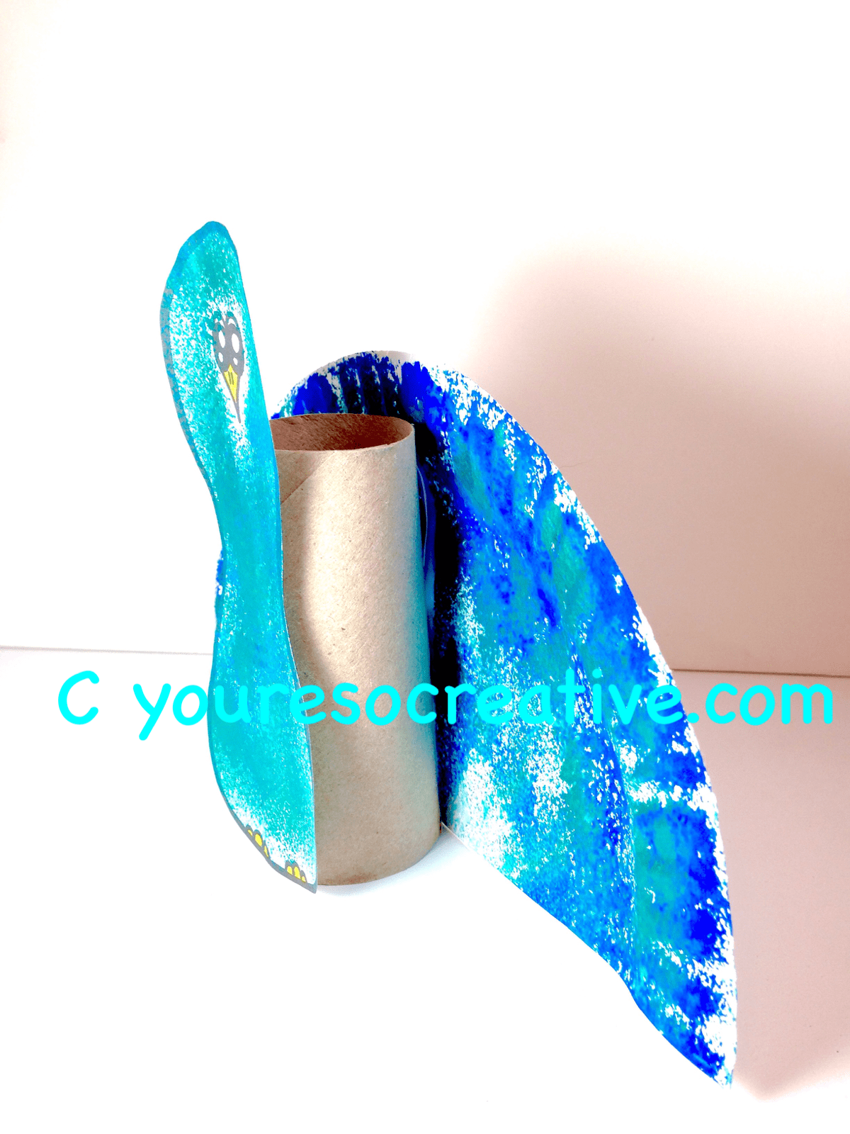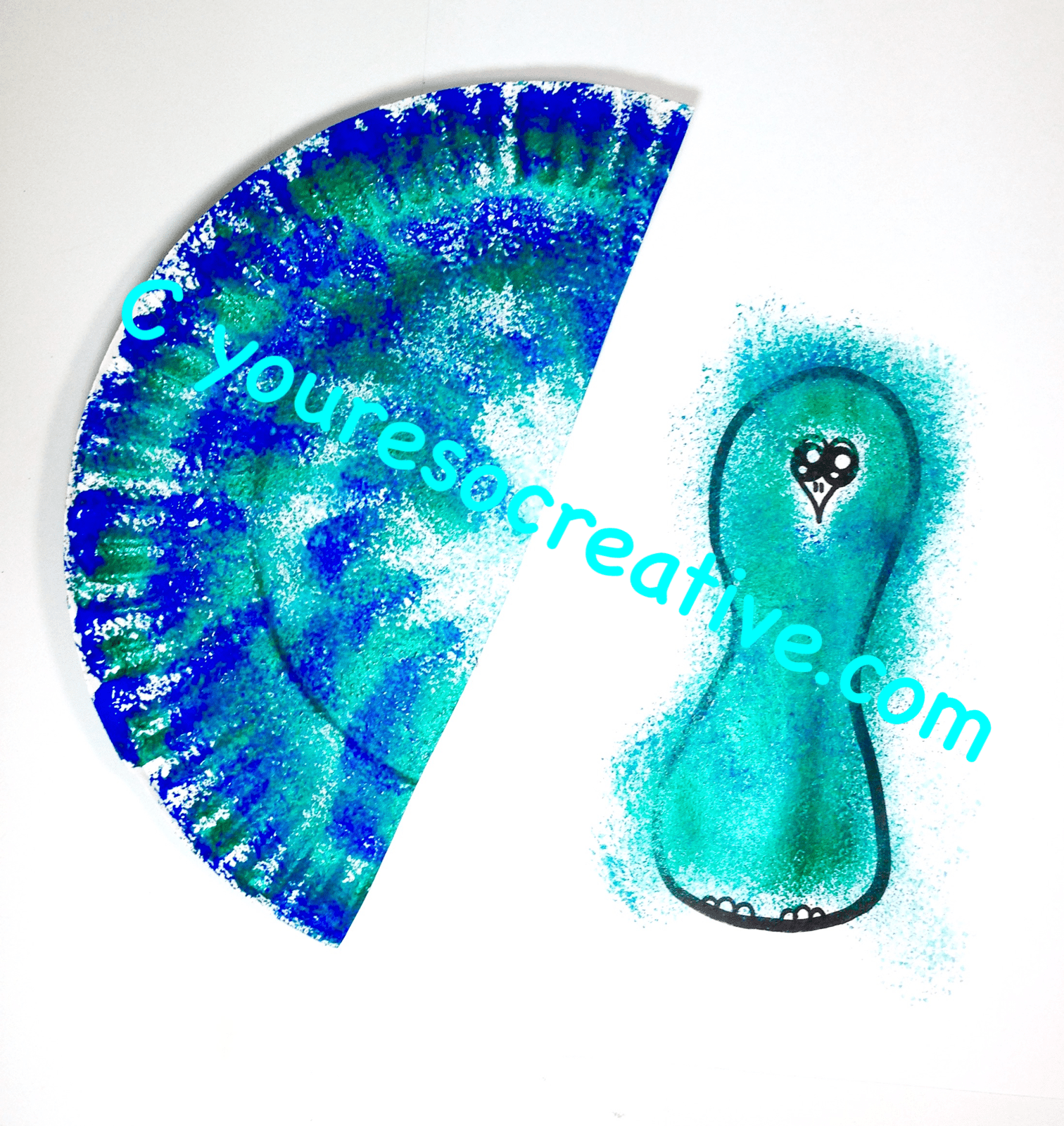- Pour a small amount of green and blue paint onto small plate. It is OK to let the colors mix.