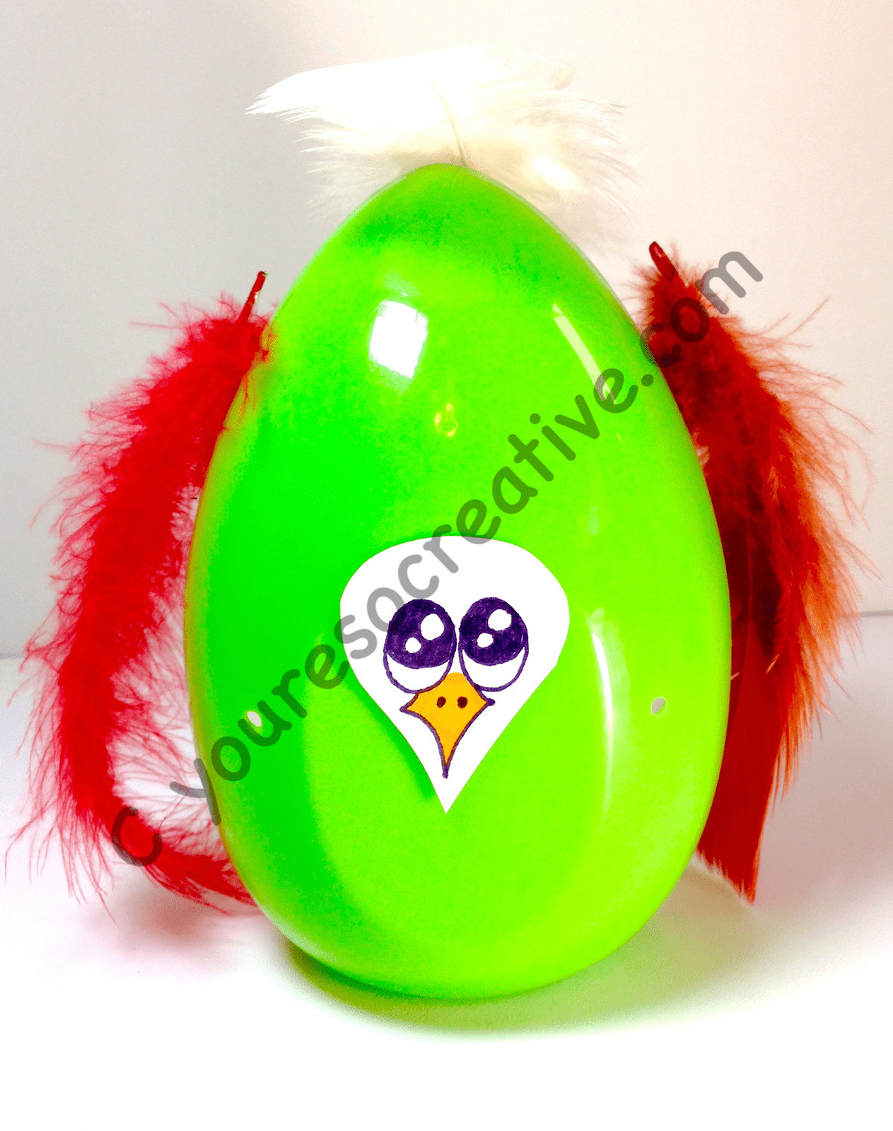 Plastic Egg Chicken Chicken Face Glue feathers onto plastic egg Glue on face Plastic Egg Chicken Supplies: Copy of chicken face Plastic eggs Glue Feathers Directions: Print and cut out chicken face. Glue on face. Glue feathers onto plastic egg. Allow to dry completely. You’re so creative! Share this: Share on Pinterest (Opens in new window) Pinterest Share on Facebook (Opens in new window) Facebook Share on X (Opens in new window) X Share on WhatsApp (Opens in new window) WhatsApp