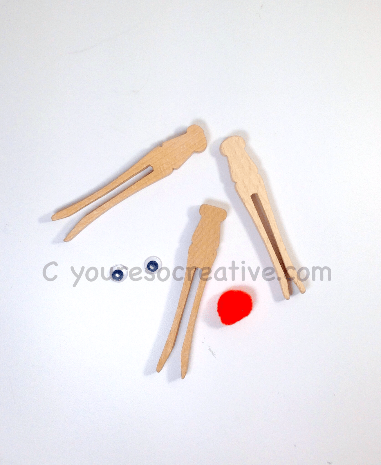 - Glue the third clothespin on in the opposite direction, to make a head.