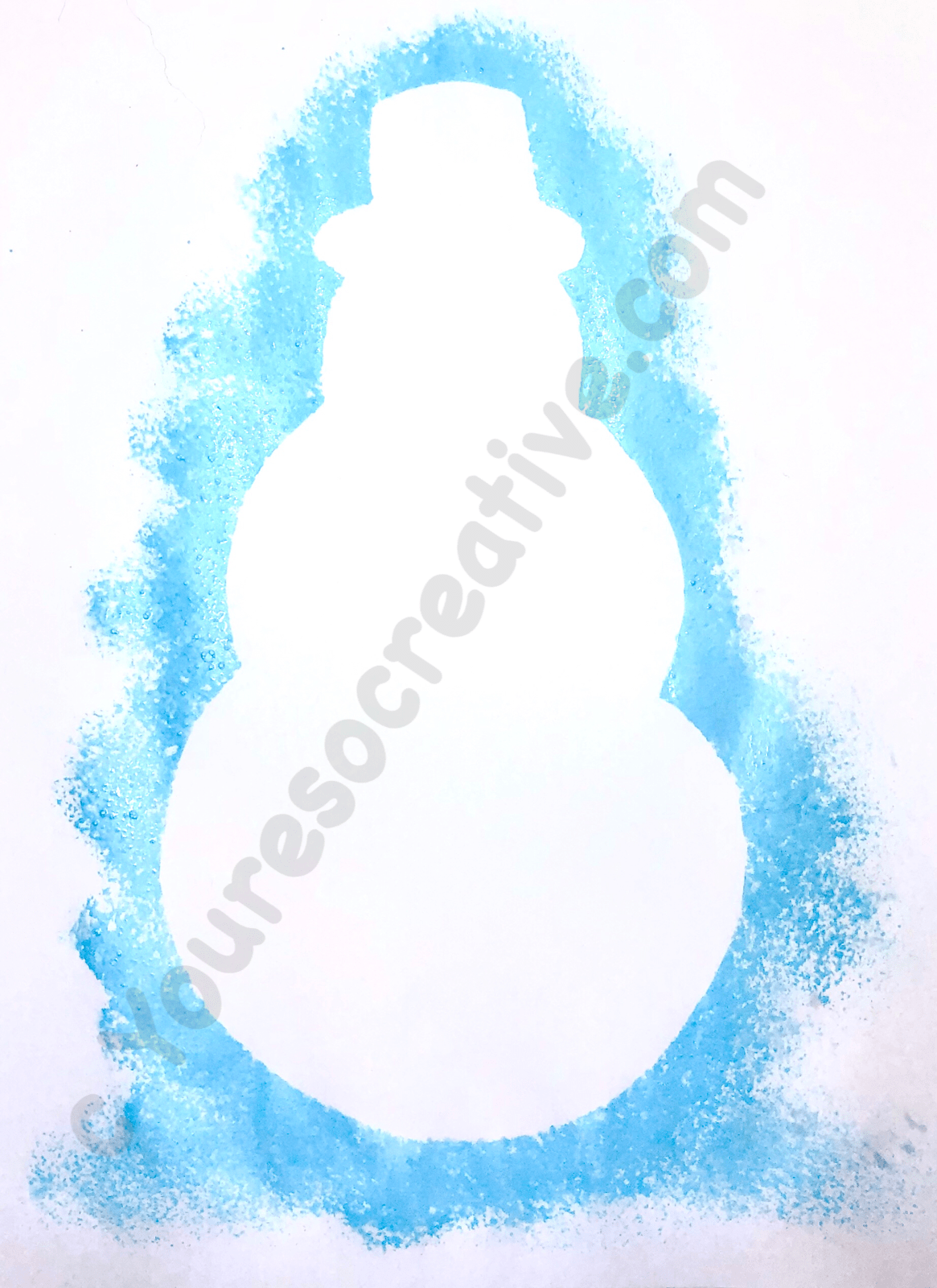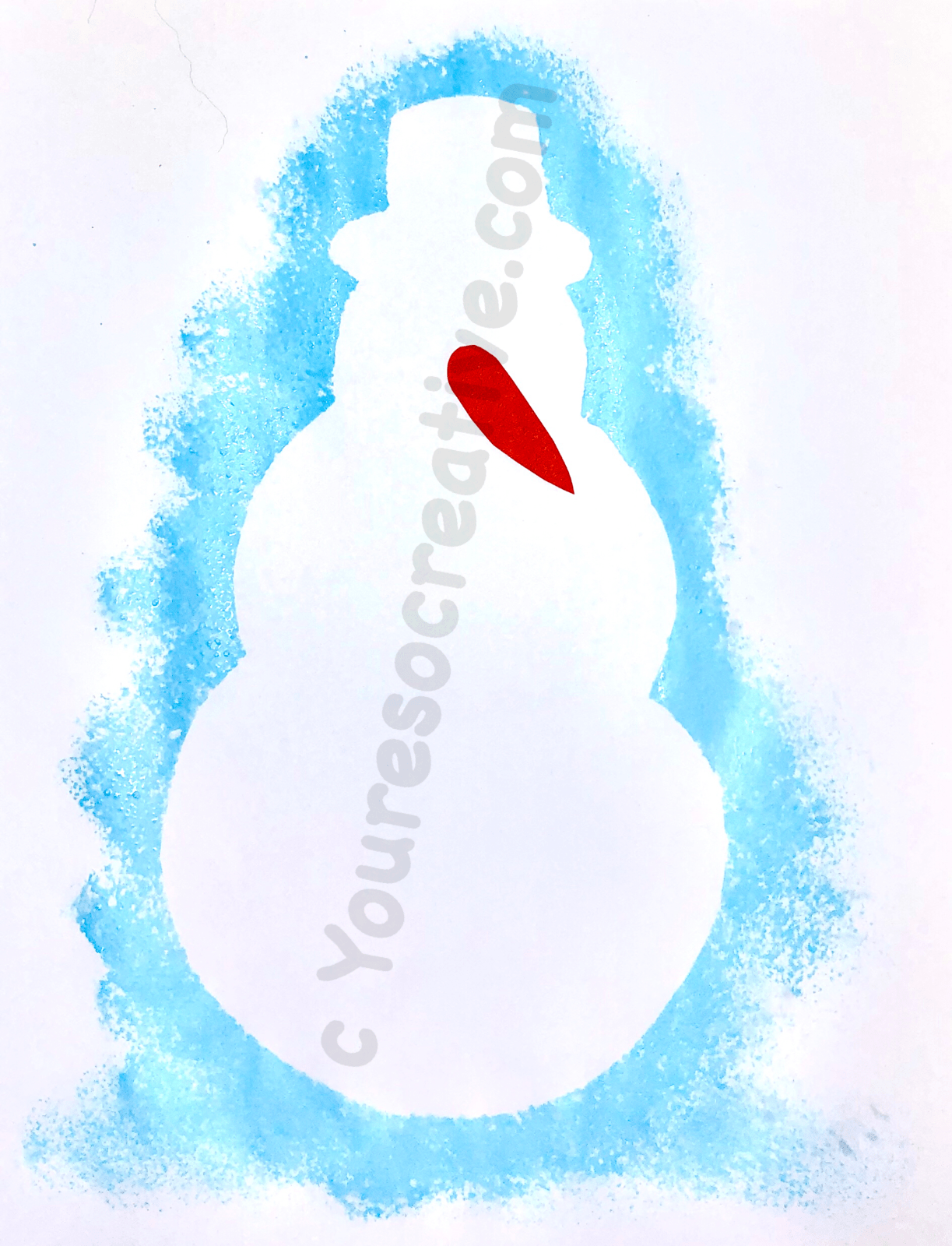 3. Place card stock snowman on a white sheet of paper. Hold in place.