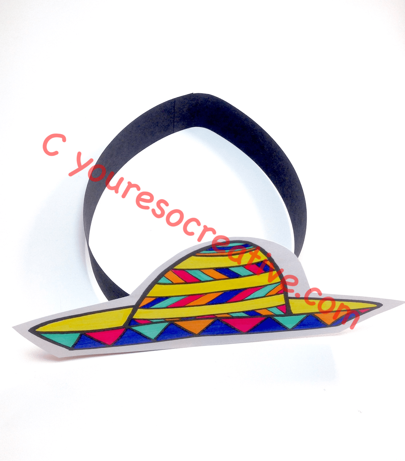 - Cut a long strip of black construction paper, about 2″ wide, and long enough to fit around the child’s head.