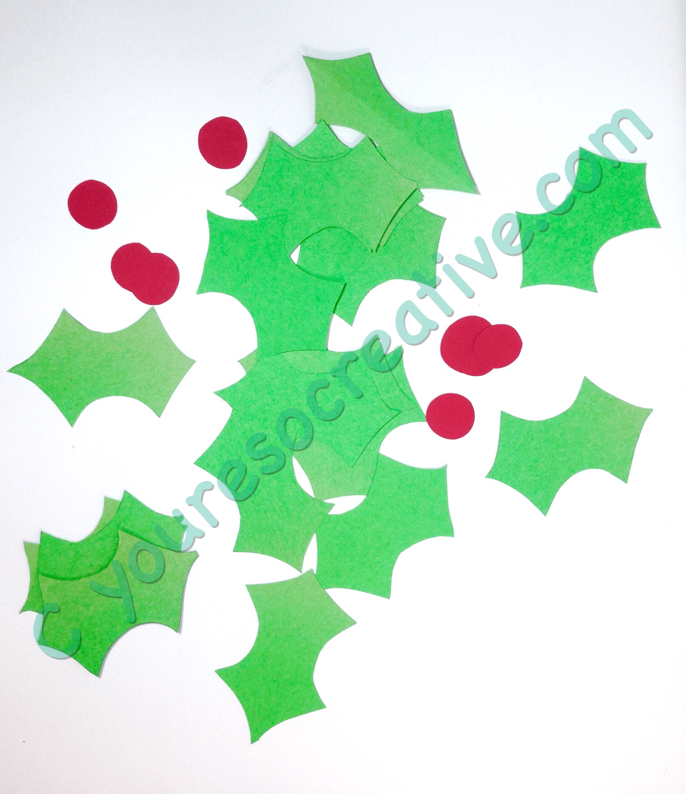 - Print holly leaves onto green paper and cut out.