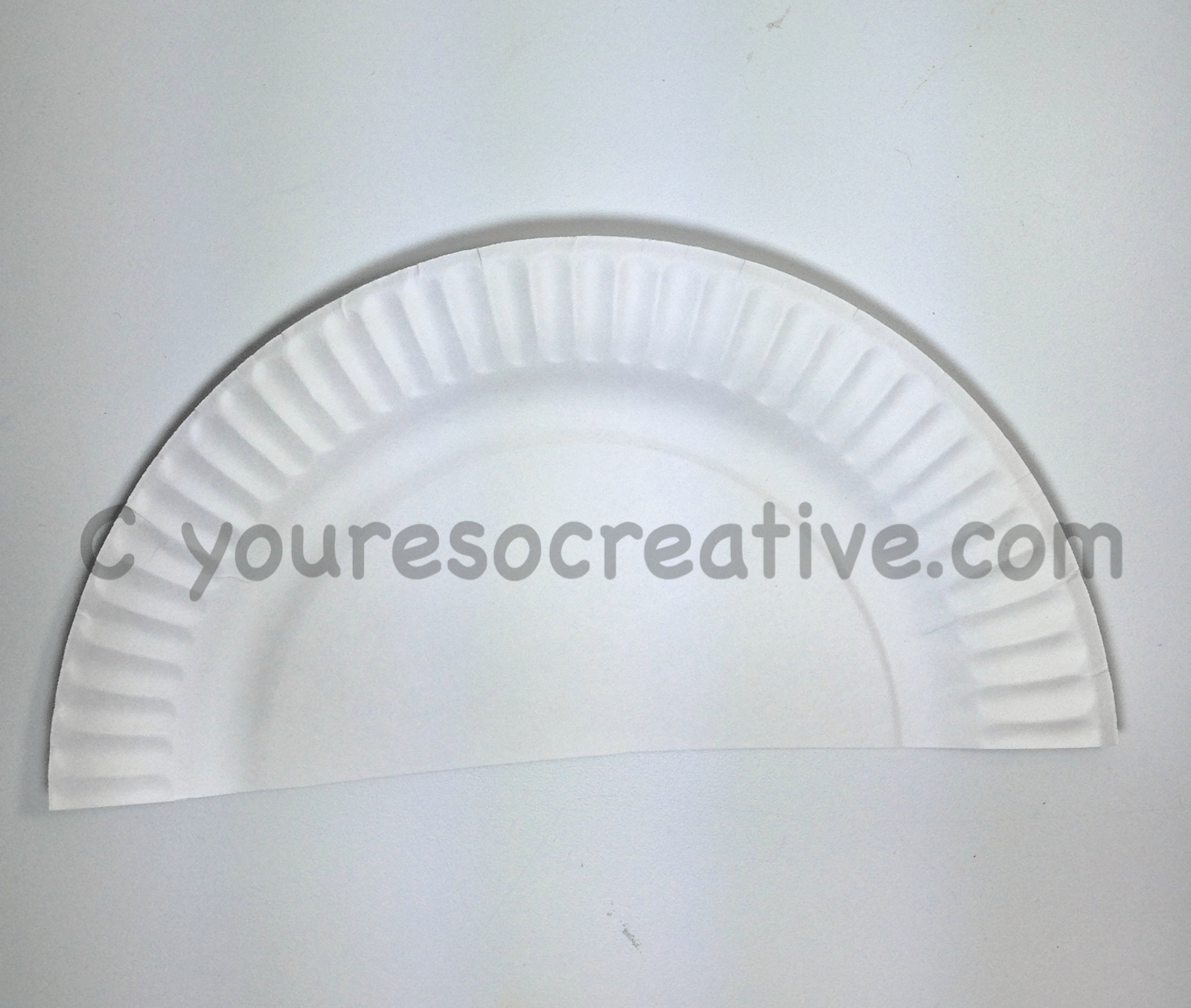 - When dry, glue the paper plate onto the back side of the long strip of paper.