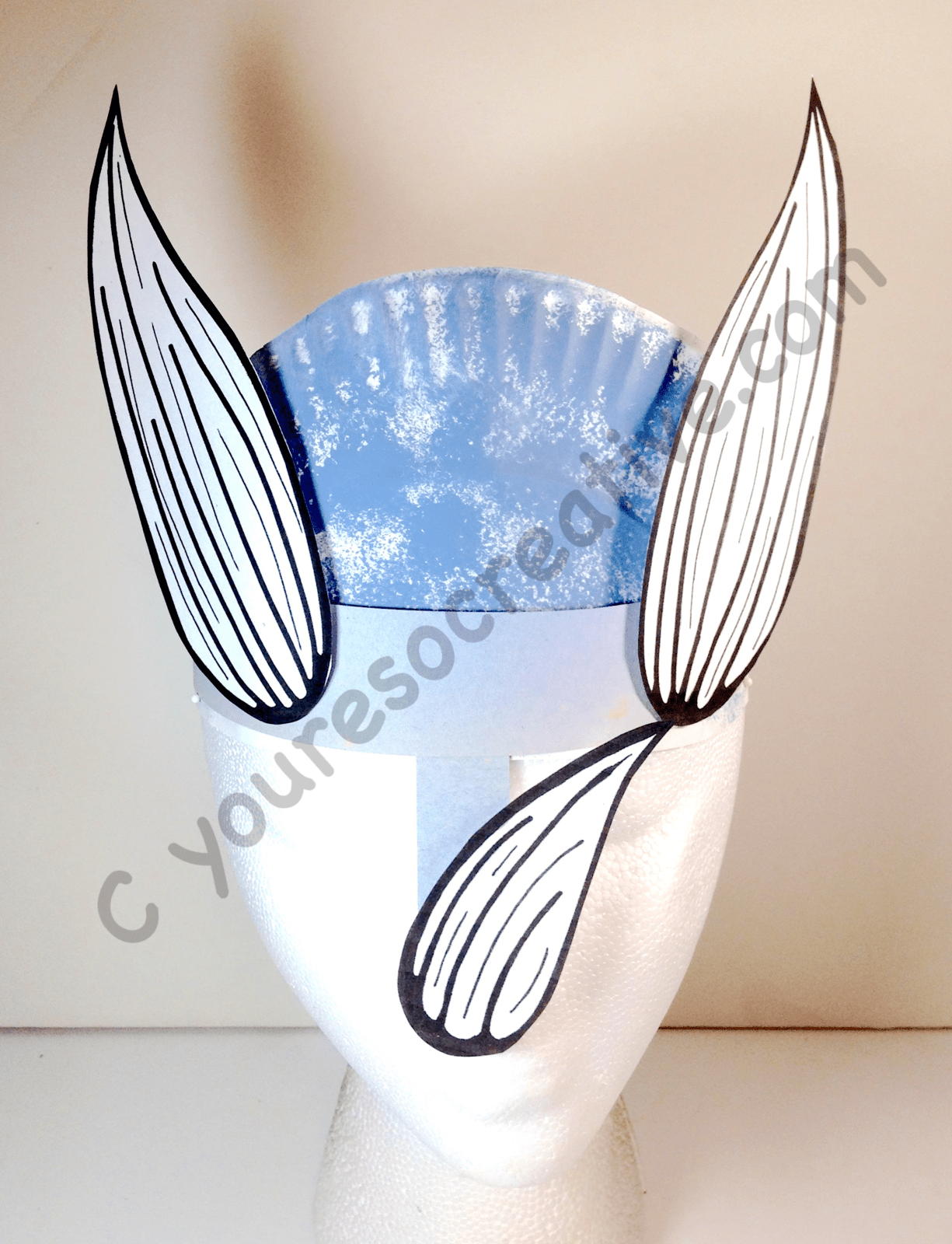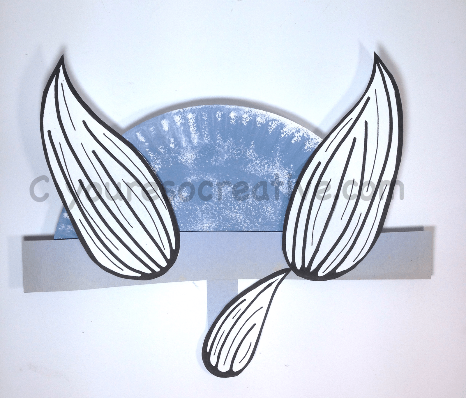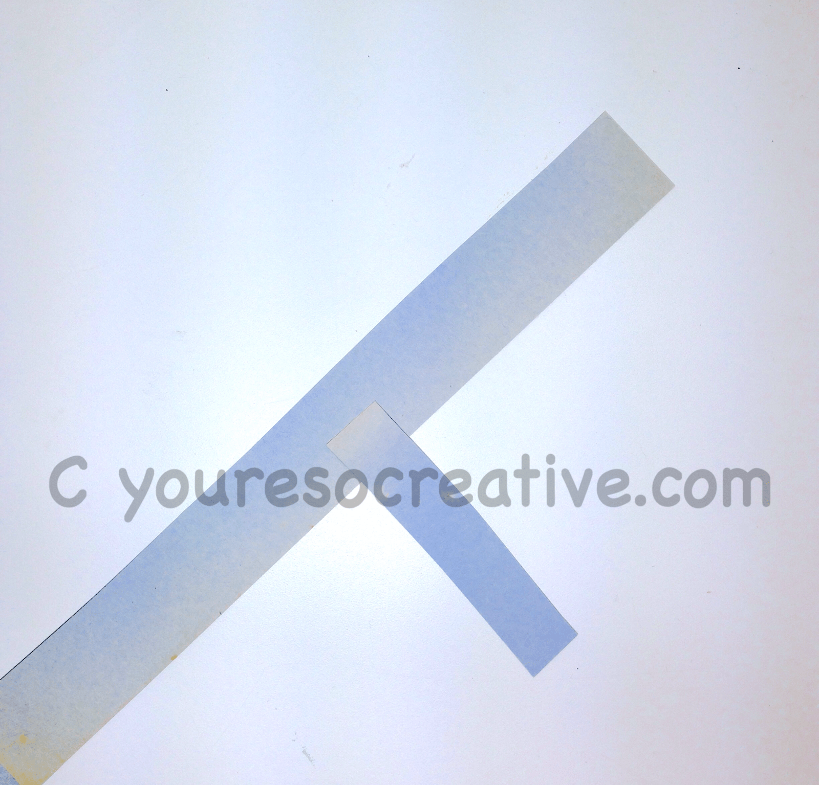 - Glue small strip perpendicular to the long grey strip. (Measure the length of short strip from forehead to tip of nose.)