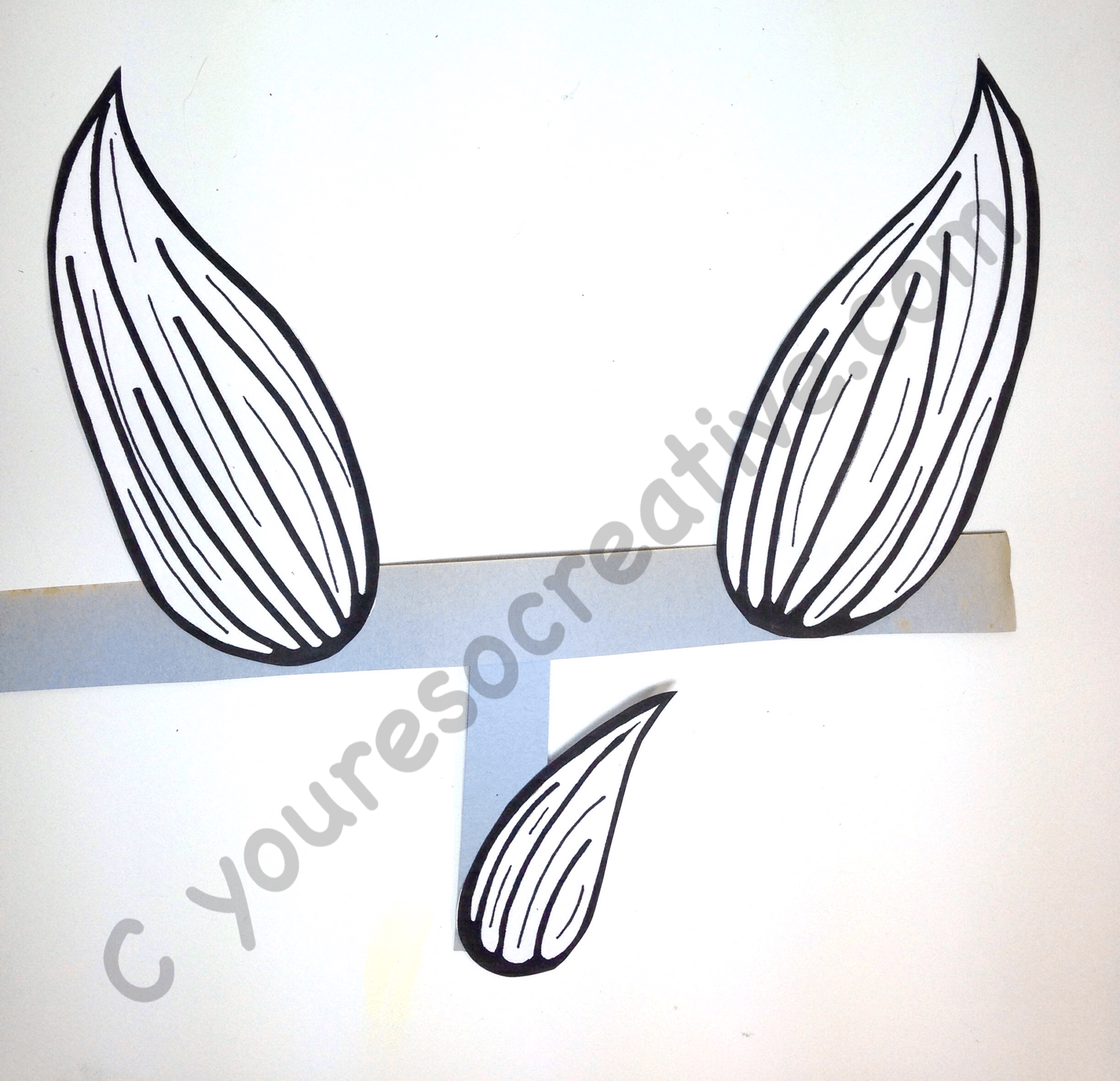 - While your artist is busy, cut out horns and three strips of grey paper: two long strips and one short.