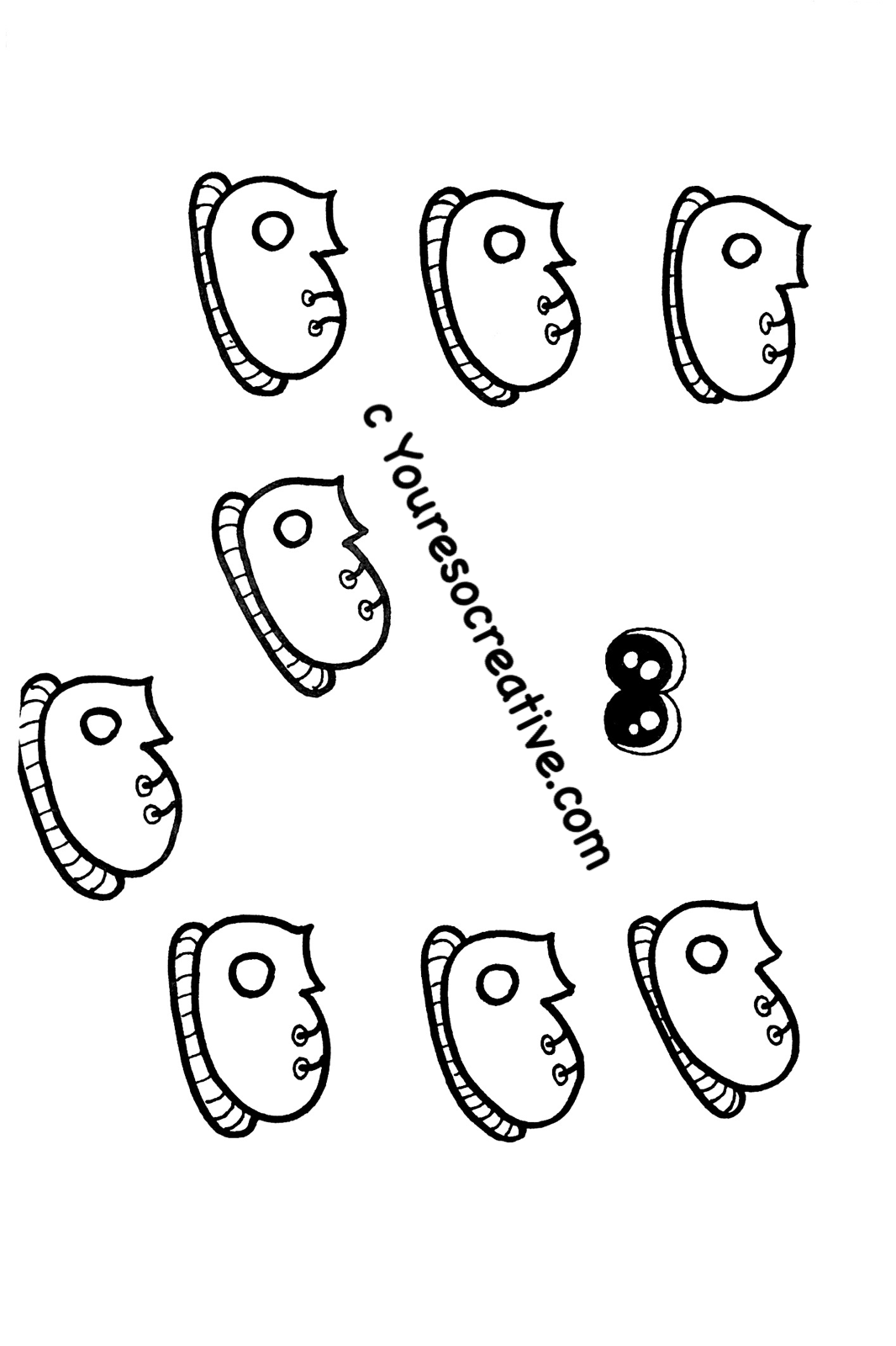 - Have your little artist color the parts while you cut 4″ pieces of yarn.