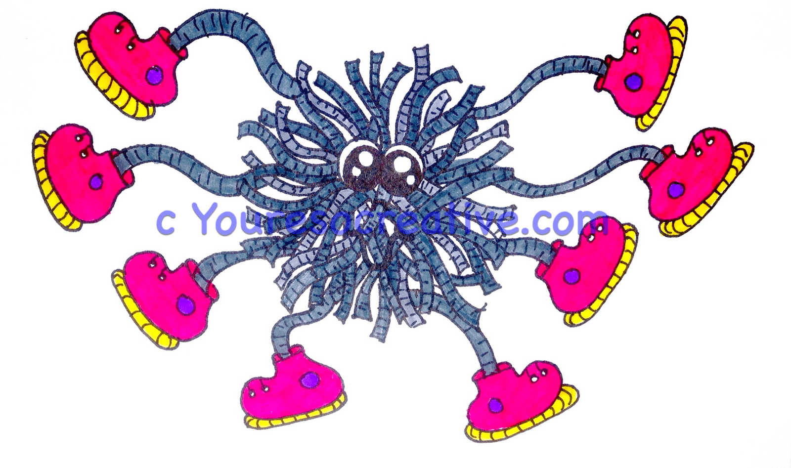 - When happy with the yarn, have your artist glue on the sneakers and eyes.